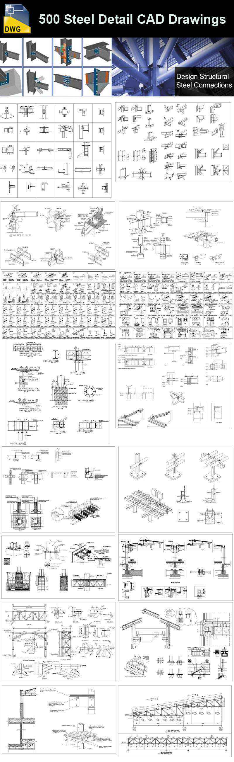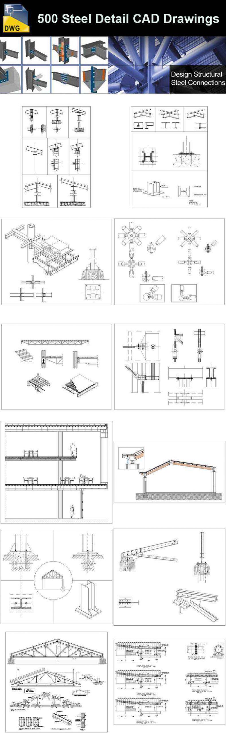 【Architecture CAD Details Collections】-Over 500+ various type of Steel Structure Details CAD Drawings