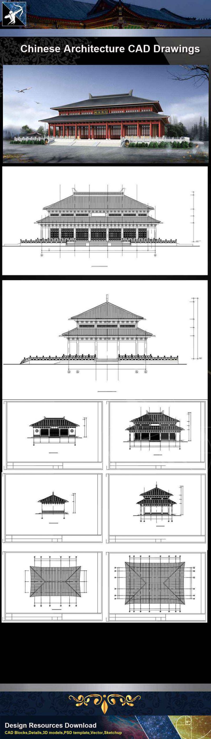 ★【Chinese Architecture CAD Drawings】@Chinese Temple Drawings,CAD Details,Elevation