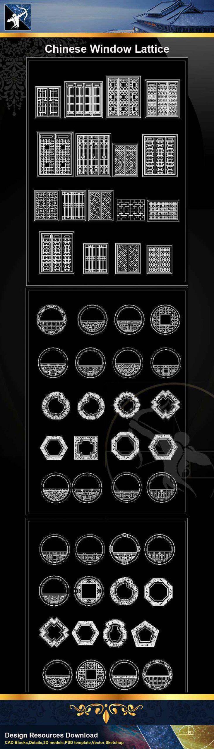 ★【Chinese Window Lattice CAD Blocks】@Autocad Blocks,Drawings,CAD Details,Elevation
